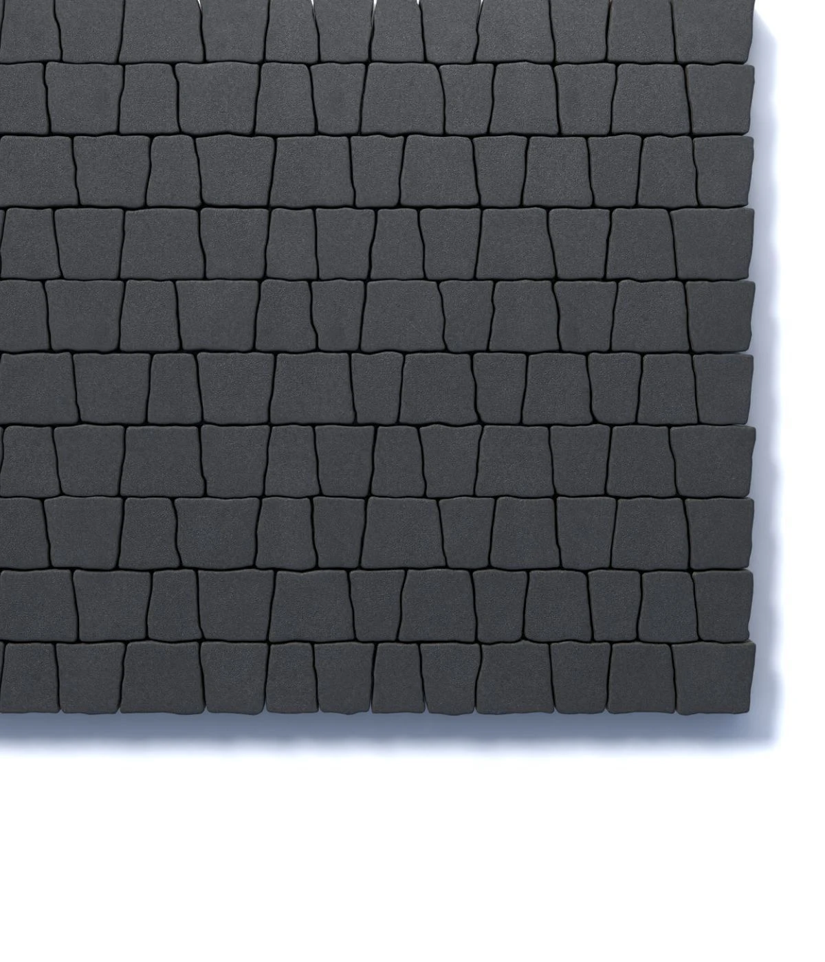 Состоит из 5-и элементов, которые выкладываются в хаотичном порядке рядами. Трапециевидная форма плиты позволяет выполнять как прямую, так и радиусную выкладку. Изготавливается по уникальной технологии методом полусухого вибропрессования из бетона. Поверхность черного цвета. Брусчатка Абрис отличается высокой износостойкостью и практичностью в эксплуатации.