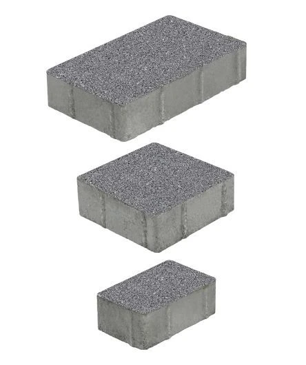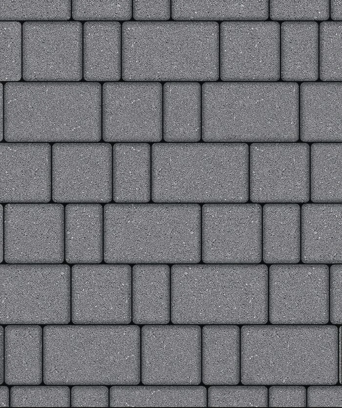 Состоит из 3-х элементов, которые выкладываются в хаотичном порядке рядами. Изготавливается по уникальной технологии методом полусухого вибропрессования из бетона. Поверхность серого цвета.