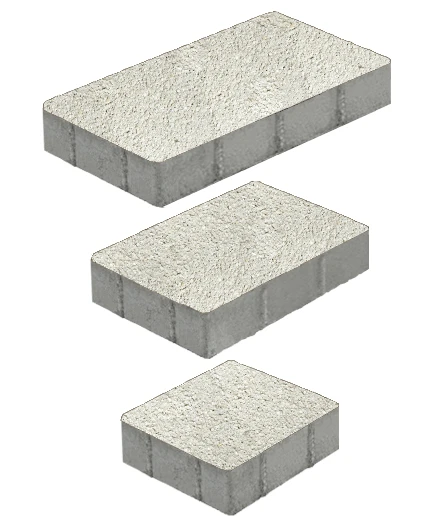 Состоит из 3-х элементов, которые выкладываются в хаотичном порядке рядами. Изготавливается по уникальной технологии методом полусухого вибропрессования из бетона. Брусчатка Трио изготовлена с добавлением натуральной мраморной крошки белого цвета, отличается высокими физико-механическими свойствами.