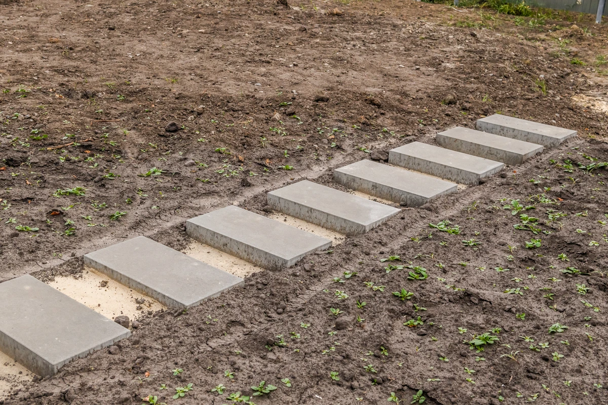 - Закрепление плит. Уплотните грунт вокруг плит для дополнительной фиксации. При необходимости укрепите плиты с помощью цементного раствора.