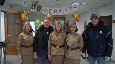 Сегодня 22 февраля женский коллектив завода и Торгового Дома "Поревит" поздравил мужчин с наступающим праздником.