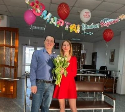 Мужской коллектив сегодня поздравляет женщин с 8 марта.