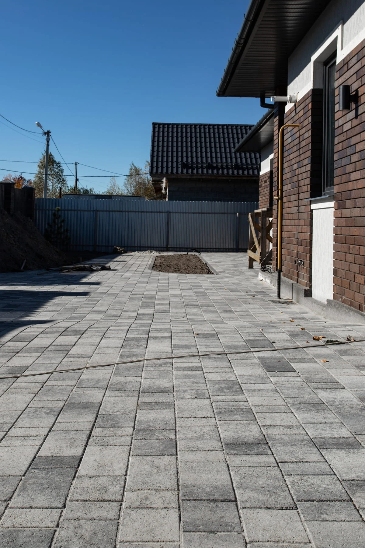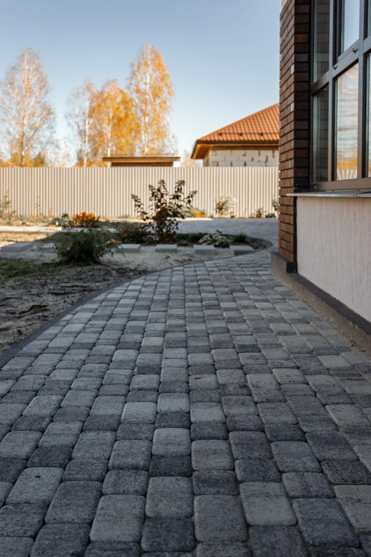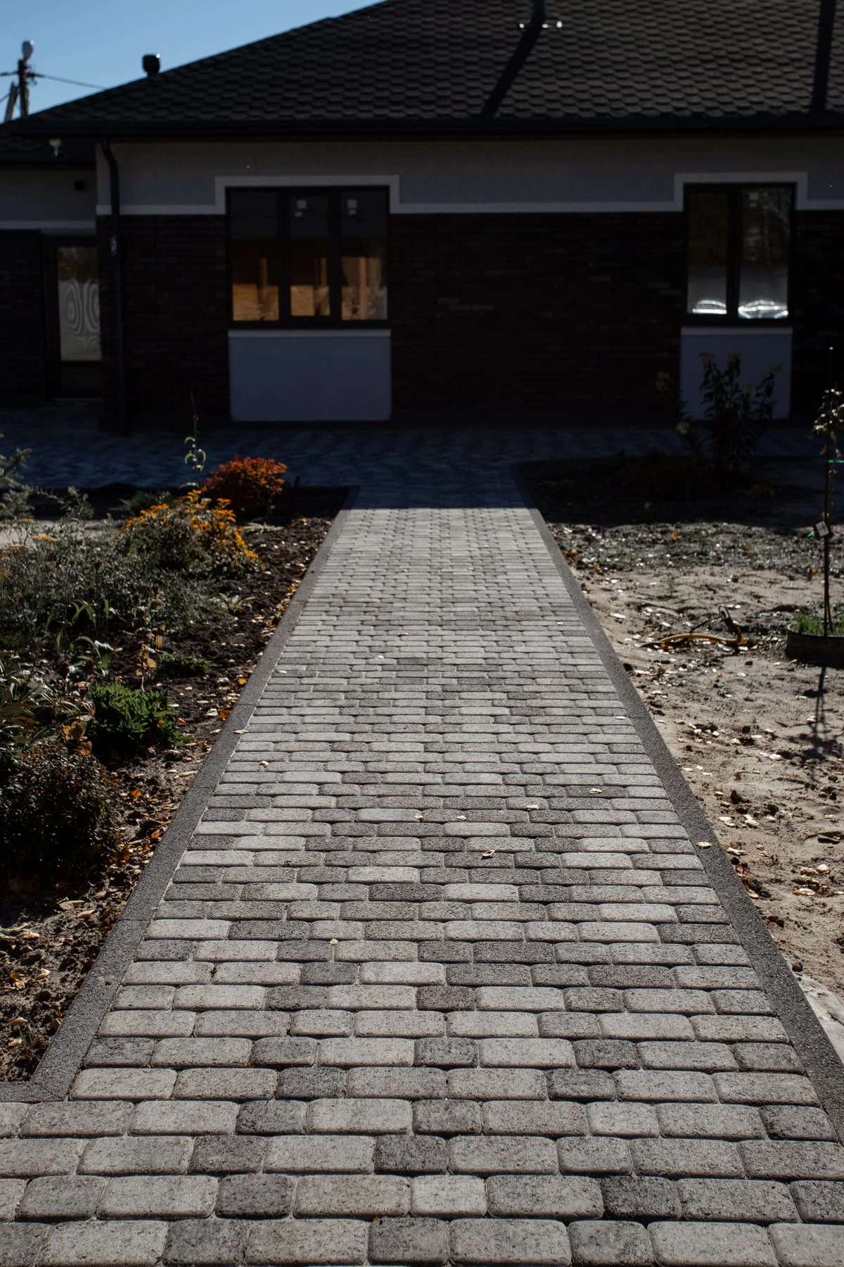 —Благоустройство дома: плитка в цвете Антрацит и шаговые дорожки