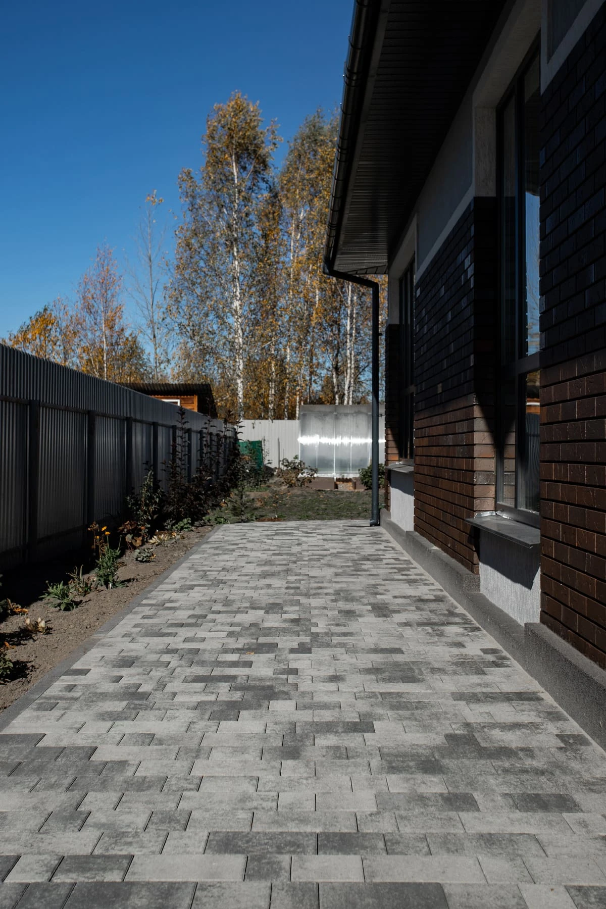 • Благоустройство дома: плитка в цвете Антрацит и шаговые дорожки