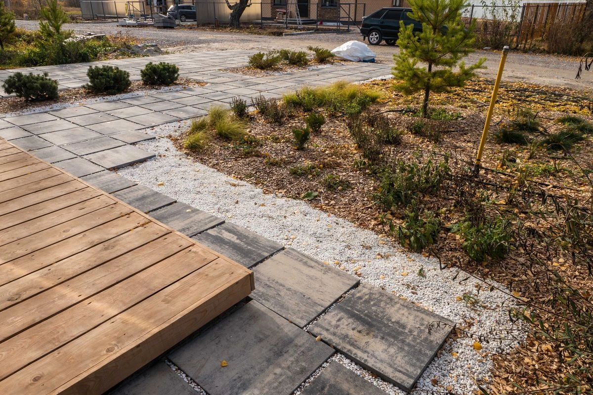 • Благоустройство дома: плитка в цвете Антрацит и шаговые дорожки