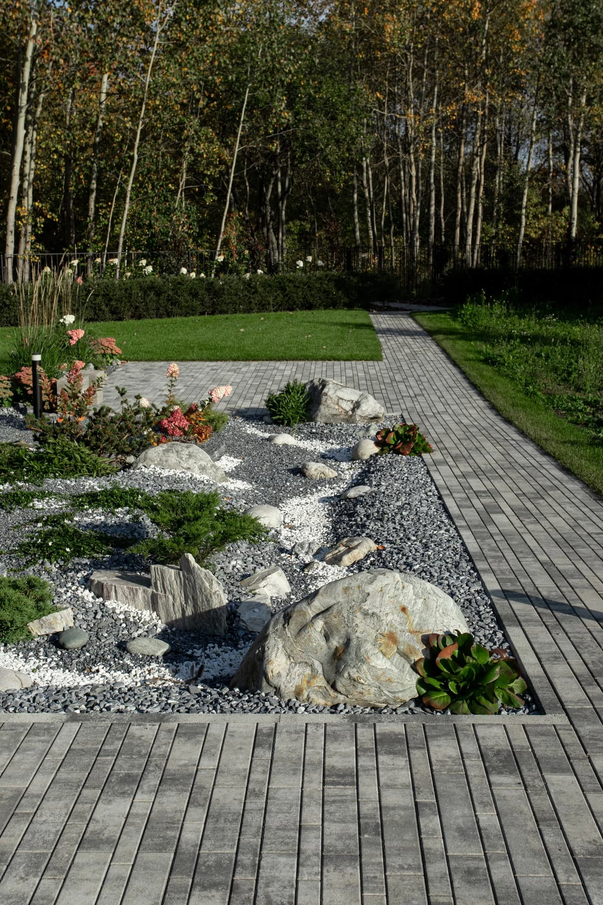 • Ландшафтный дизайн участка с укладкой плитки Старый город и Паркет 180х60 в Тюмени