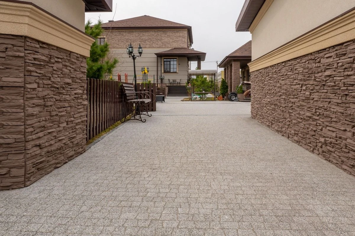 Закончены работы на территории частного домовладения по укладке тротуарной плитки. Заказчик пожелал оформить парковочную зону, пешеходные дорожки и зону отдыха. Для благоустройства использована: тротуарная плитка «Прямоугольник» 200*200 мм, в коллекции Гранит желтого и коричневого цвета плитка Прямоугольник размерами 100*200 мм, в коллекции Гранит коричневого цвета плитка «Абрис» в коллекции Мрамор, бело-черного цвета.