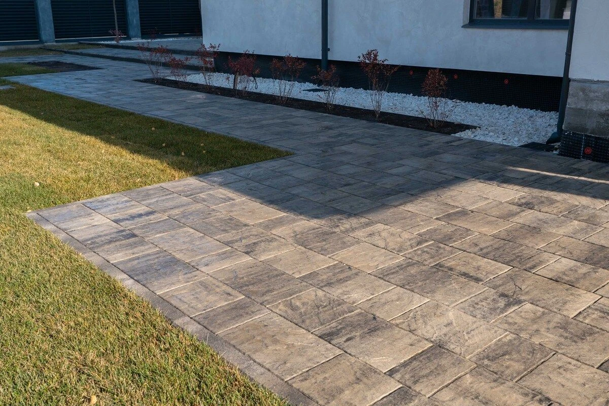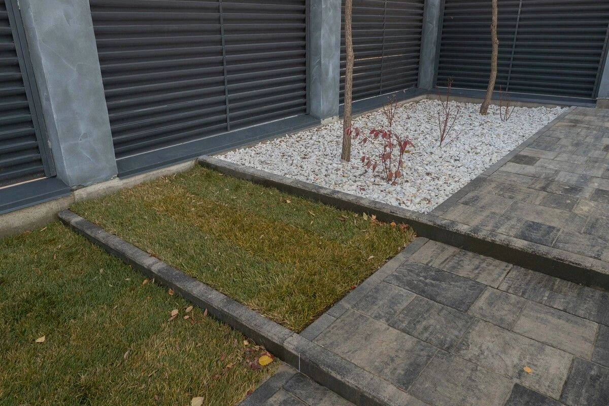 Бордюр Антрацит идеально дополняет тротуарную плитку.