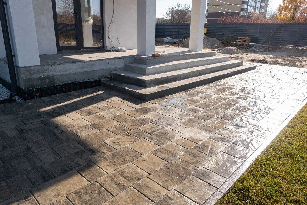 • Укладка бетонной плитки серого цвета в Комарово