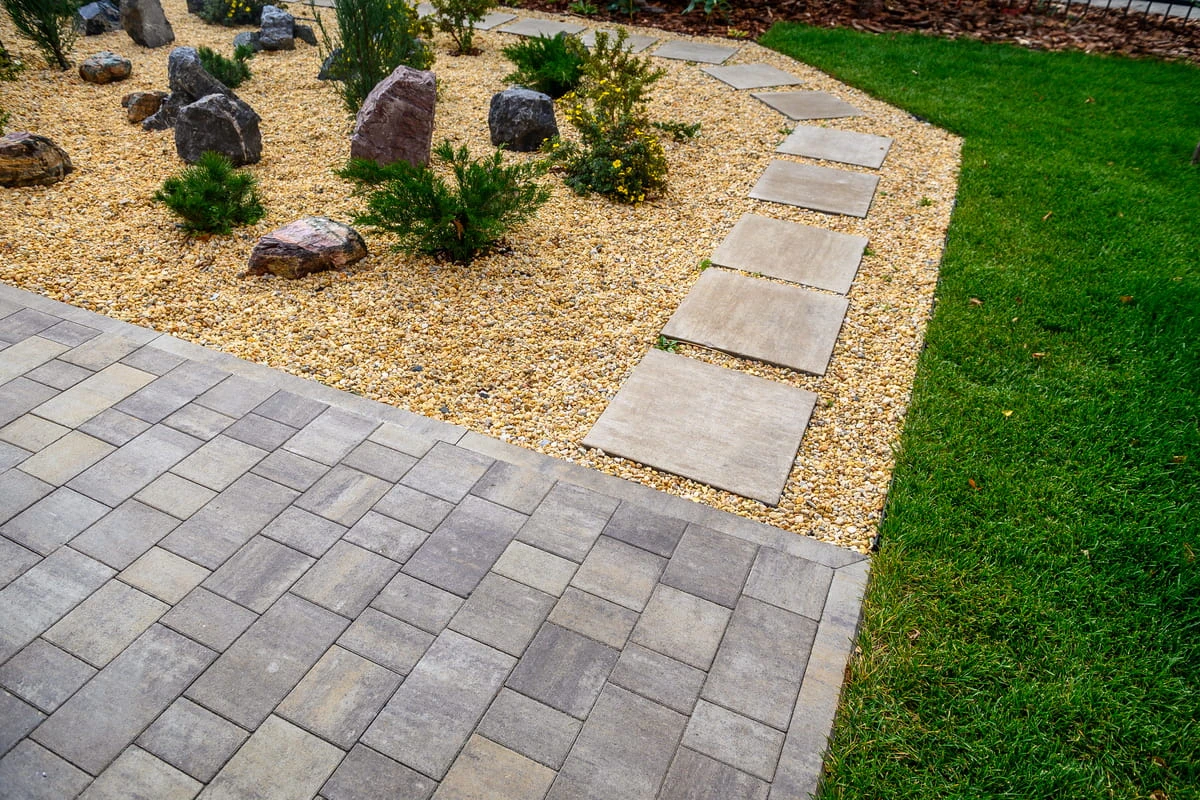 • Благоустройство дома: плитка в цвете Антрацит и шаговые дорожки