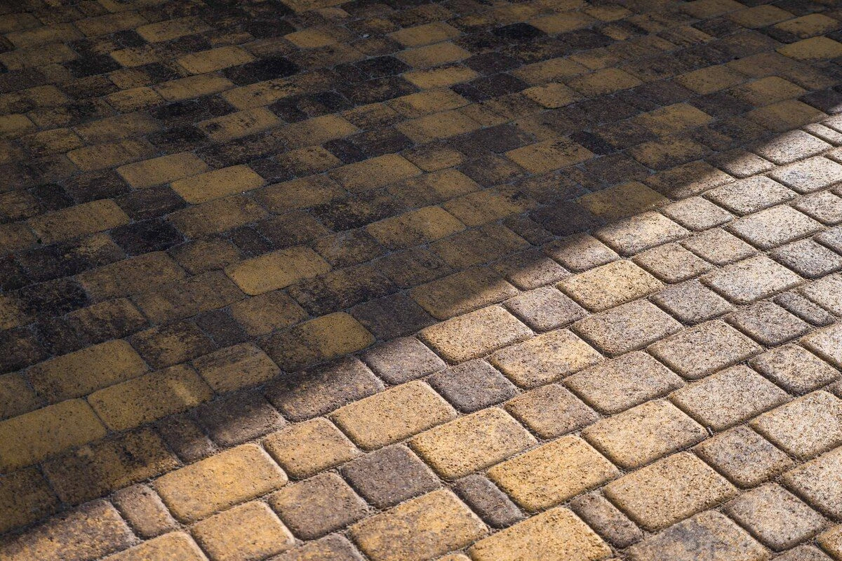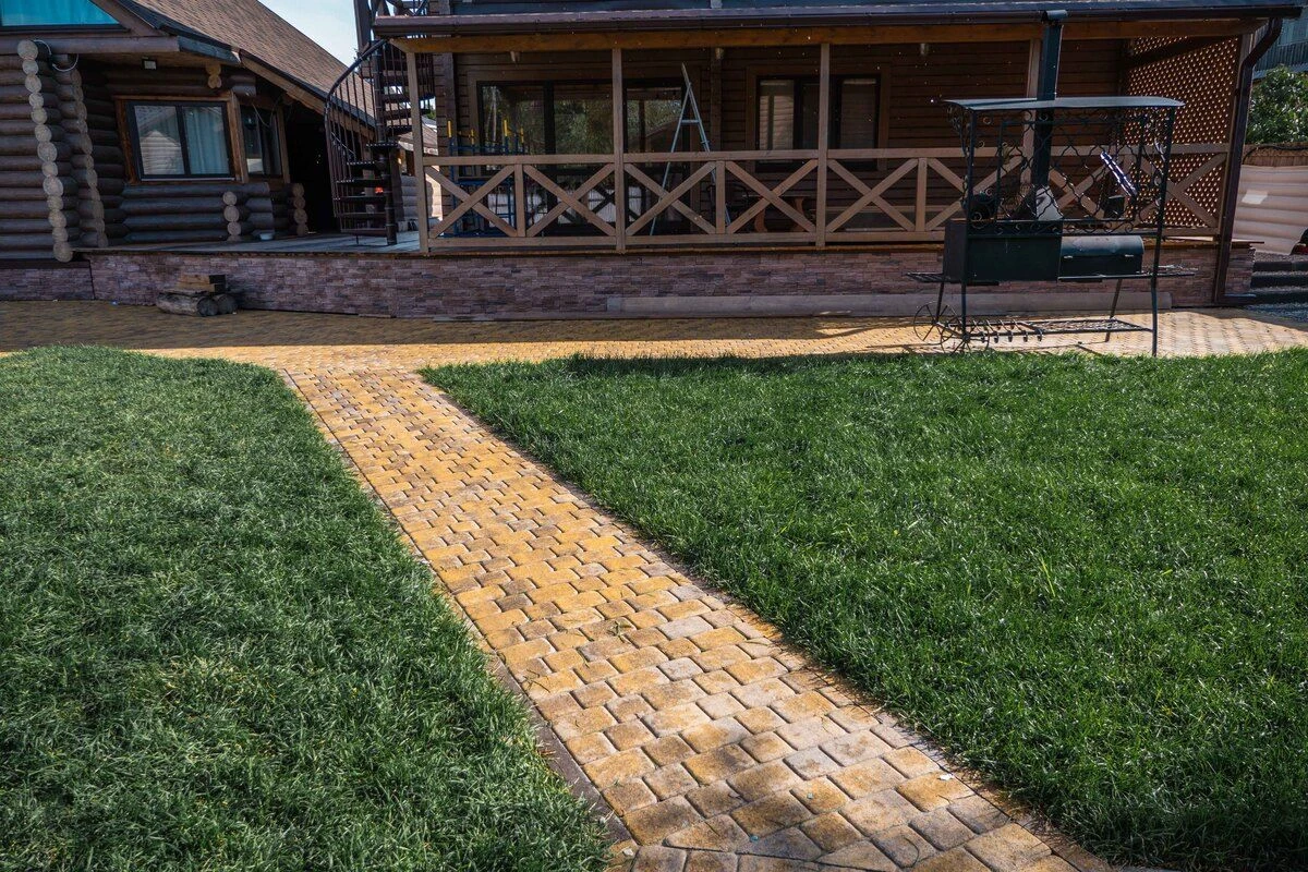 Цвет тротуарной плитки Янтарь - идеально подходит для построенных из дерева дома, бани и других объектов.