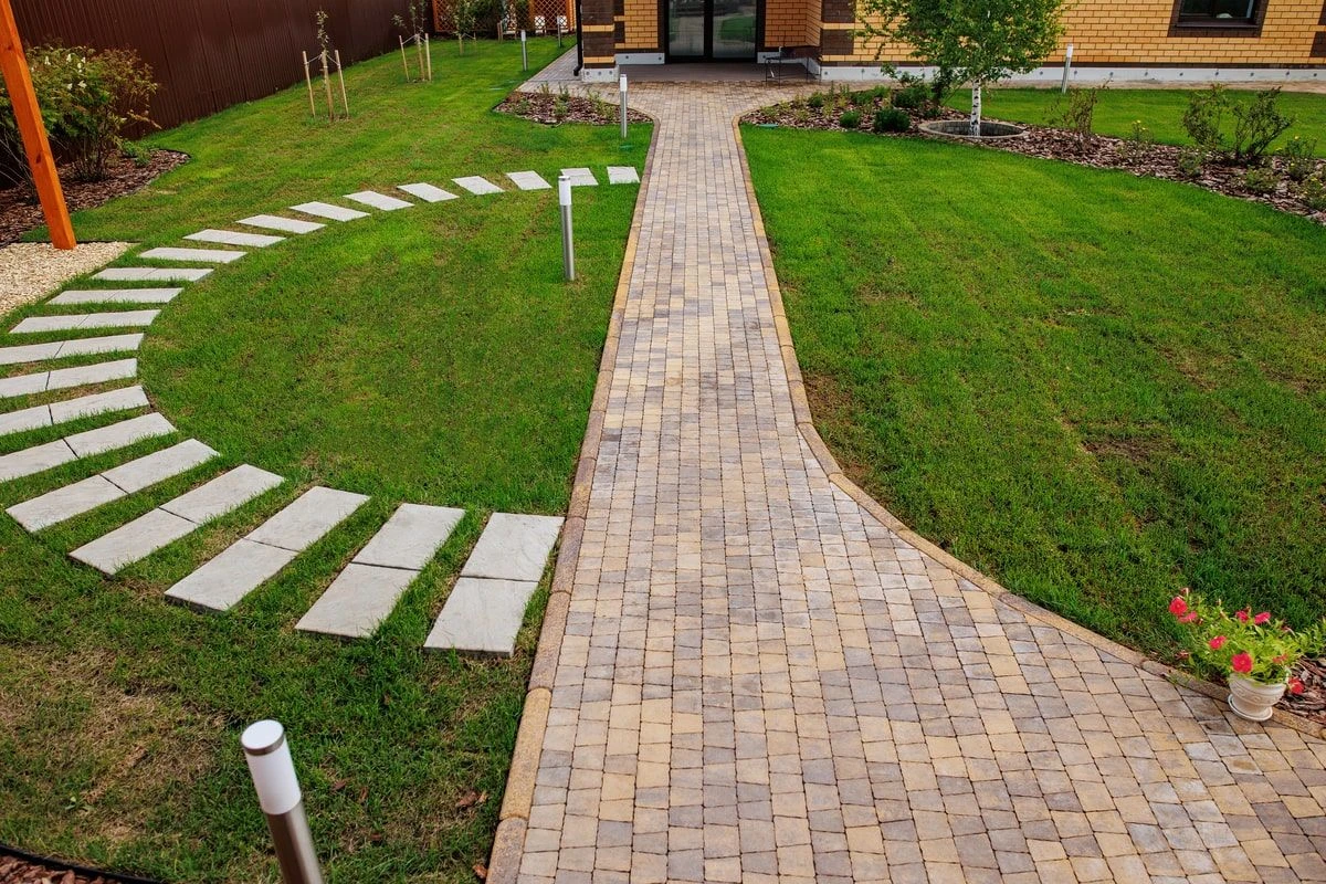 • Благоустройство дома: плитка в цвете Антрацит и шаговые дорожки