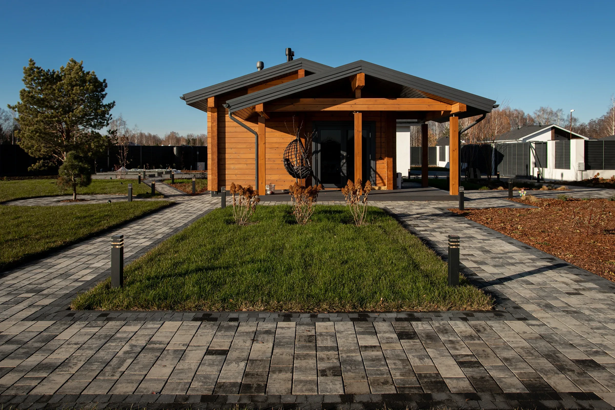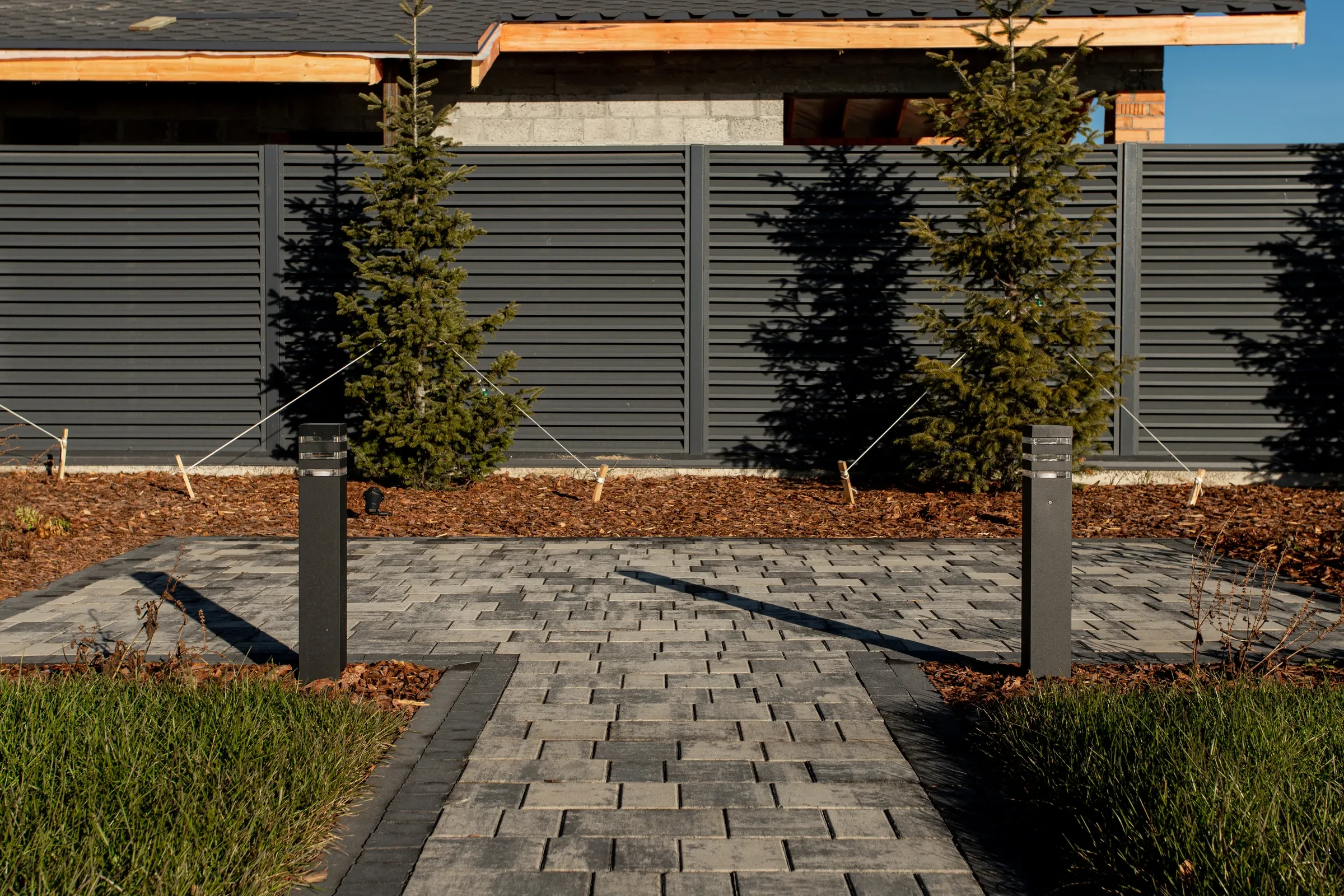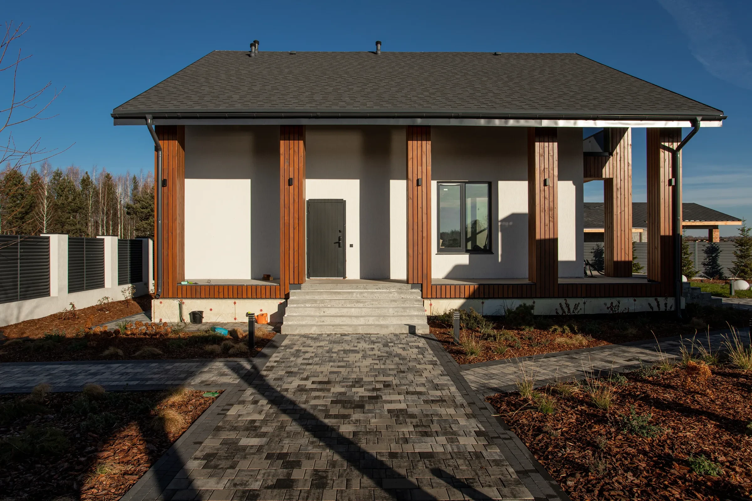 • Благоустройство дома: плитка в цвете Антрацит и шаговые дорожки