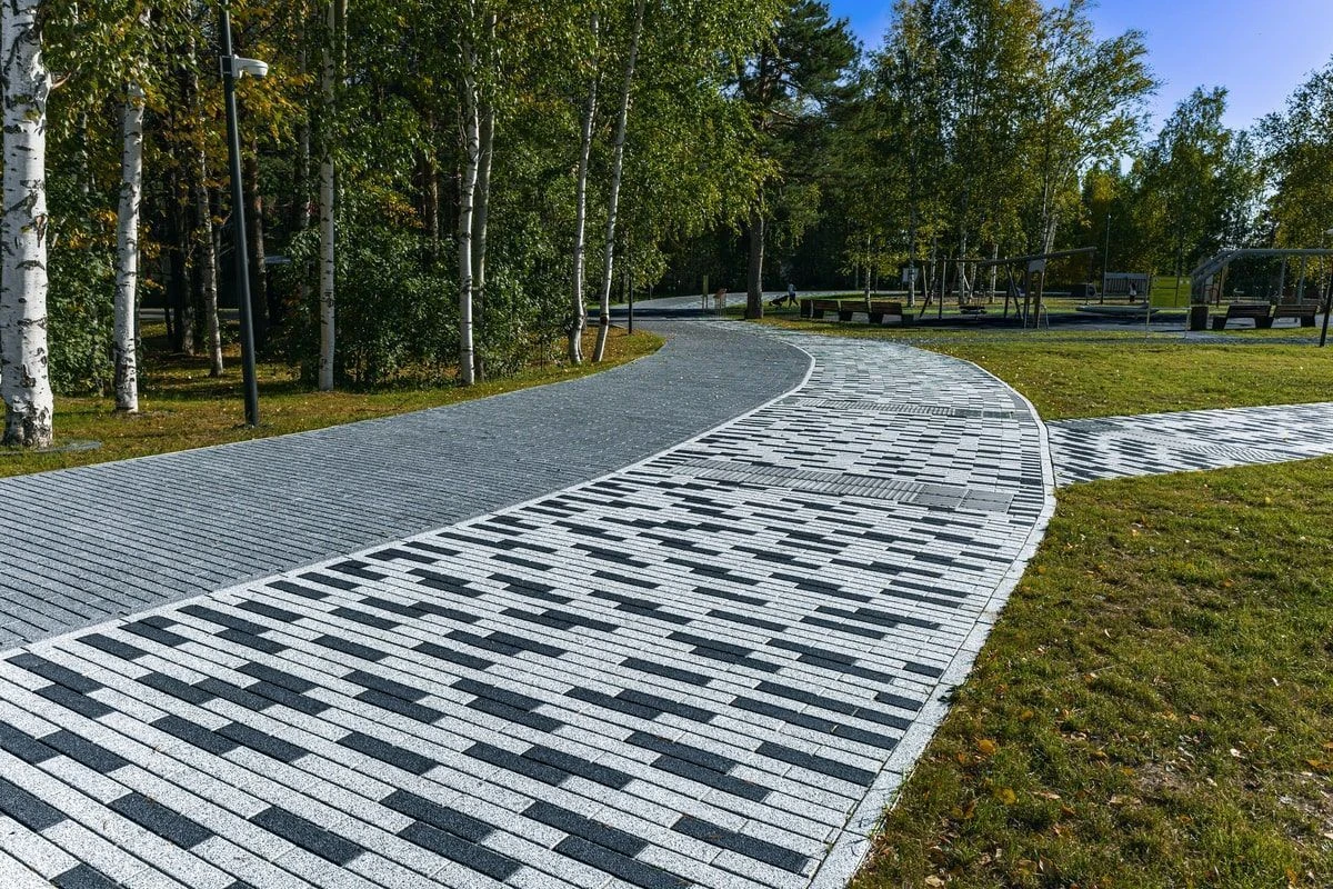• Укладка бетонной плитки серого цвета в Комарово