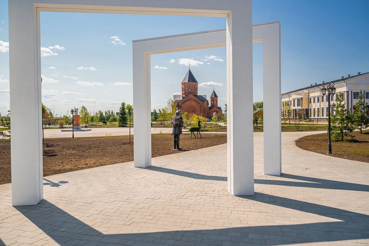 Парк Российско-Армянской дружбы отлично вписывается в городские территории. Разные коллекции и цвета плитки на тротуарах, а также нестандартный ландшафт позволили создать благоустроенное общественное пространство. Плитка уложена в формате, который обеспечивает доступность посещения парка всему населению без ограничений по формату передвижения. Бордюр-поребрик используется для разграничения зон и узоров из плитки. Некоторые дорожки сделаны из плитки кирпичик 100 на 200 красного и желтого цвета. Эти цвета используются также на флаге Армении.