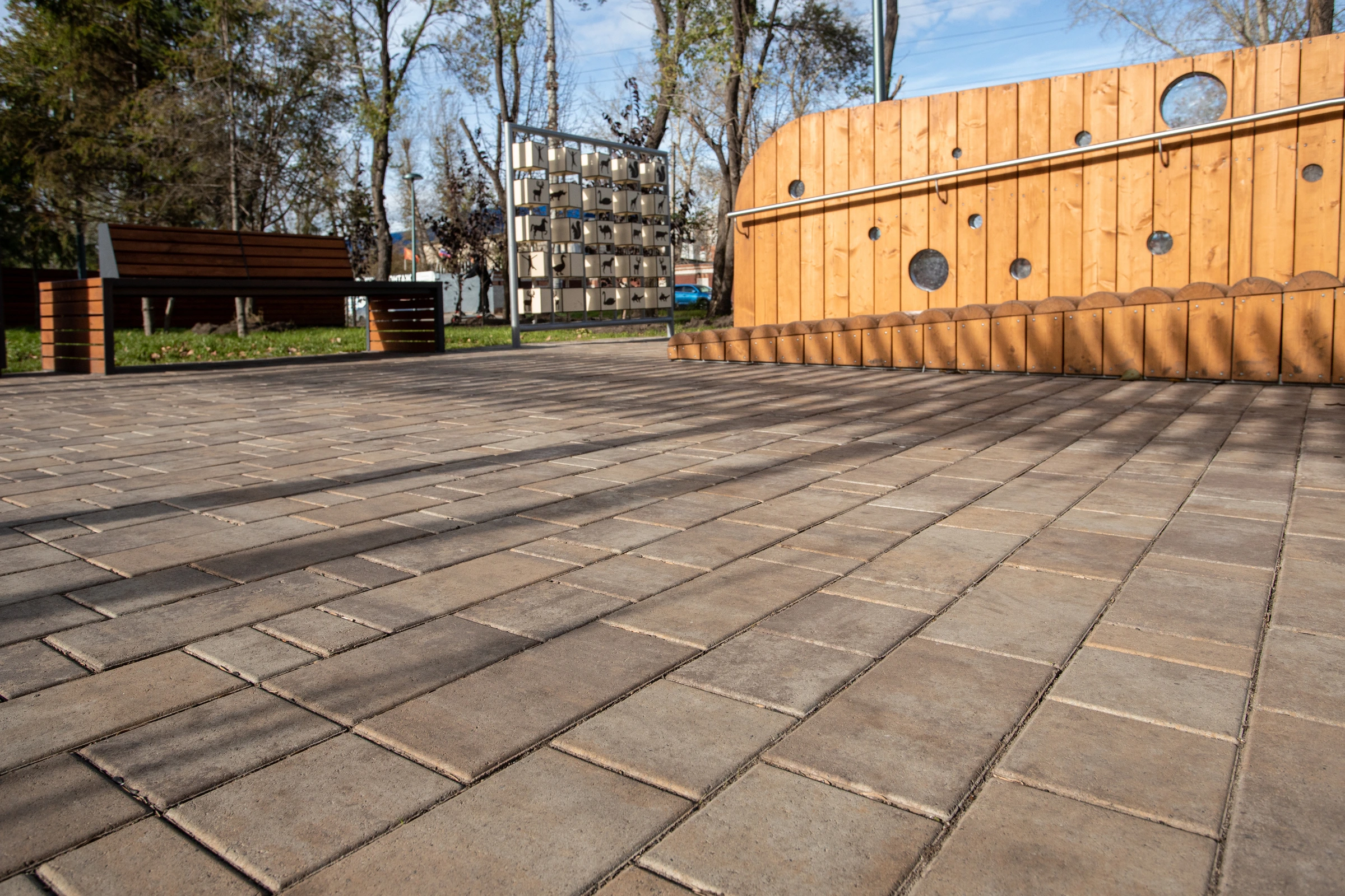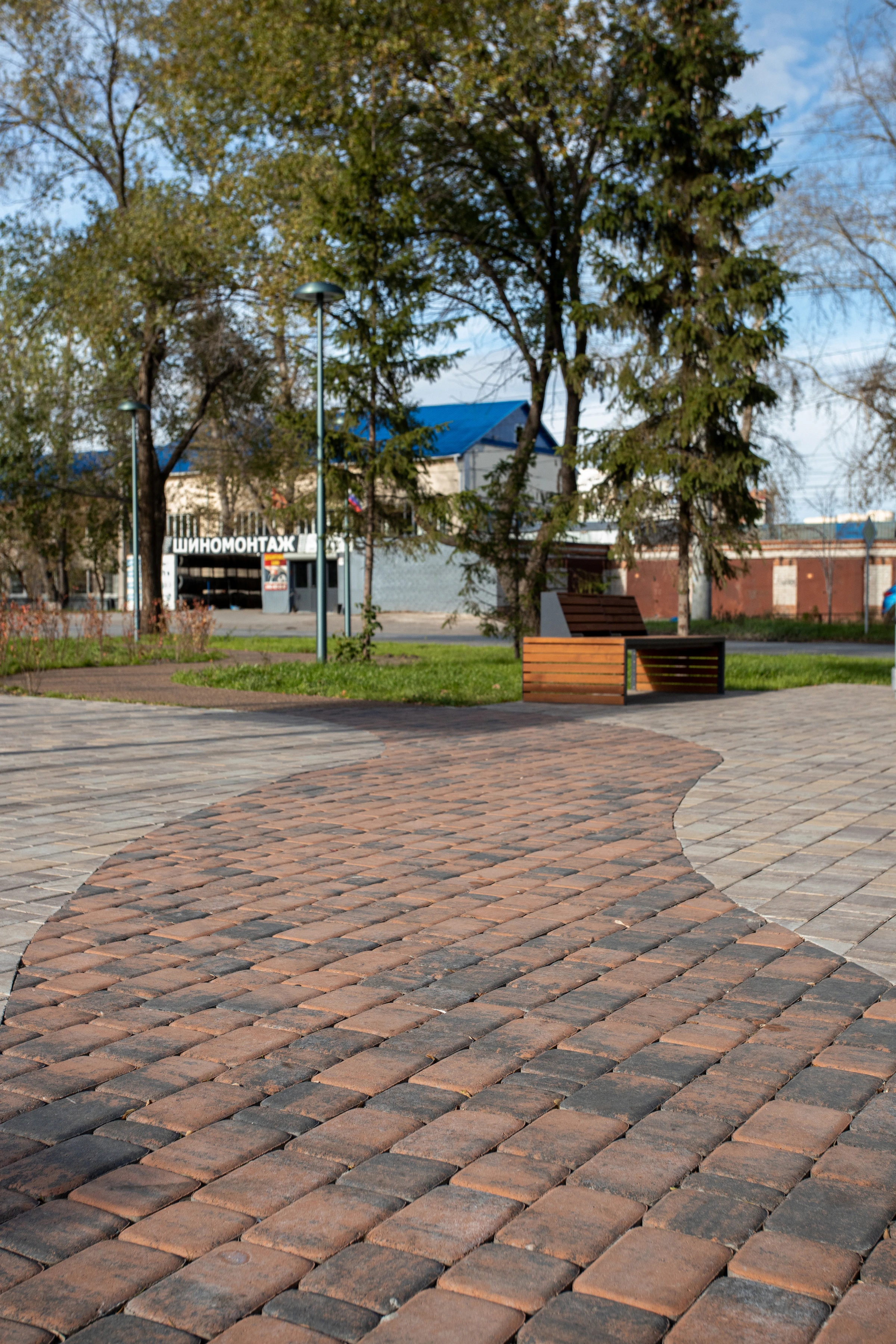 Для благоустройства пешеходных дорожек использована тротуарная плитка завода Поревит: