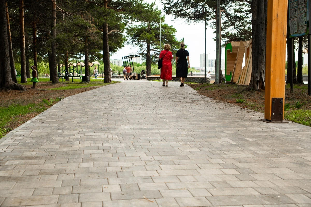 В настоящее время в рамках масштабной реновации парка «За Саймой» продолжаются работы по его благоустройству. В 2021 в районе набережной Ивана Кайдалова построена современная детская площадка «Ботаника», а также уложена тротуарная плитка для пешеходной зоны. Плитка необычная – в форме многоугольников – Мозаика, коллекция листопад гладкий, цвет Хаски и Сиена. Толщина 80 мм. Смотрится необычно и современно, дополняя детские игровые зоны. Яркие цвета плитки с градиентным переходом – коричневый, серый и красный будут создавать настроение посетителям парка.
