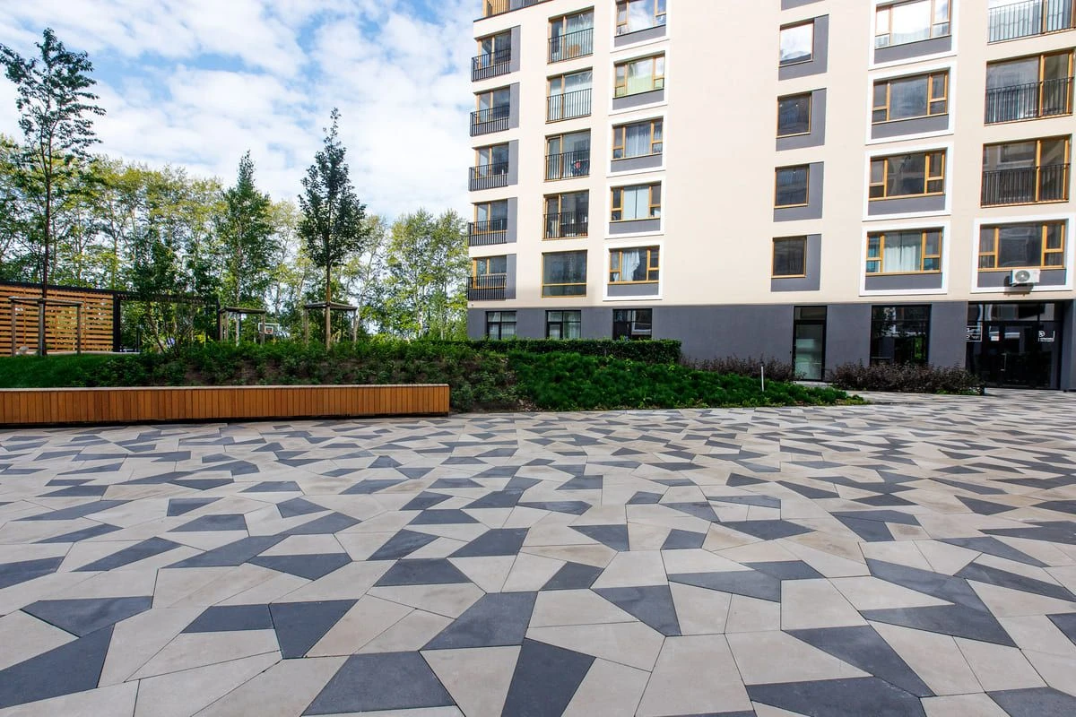 • Частная территория с плиткой Старый Город в цвете Антрацит
