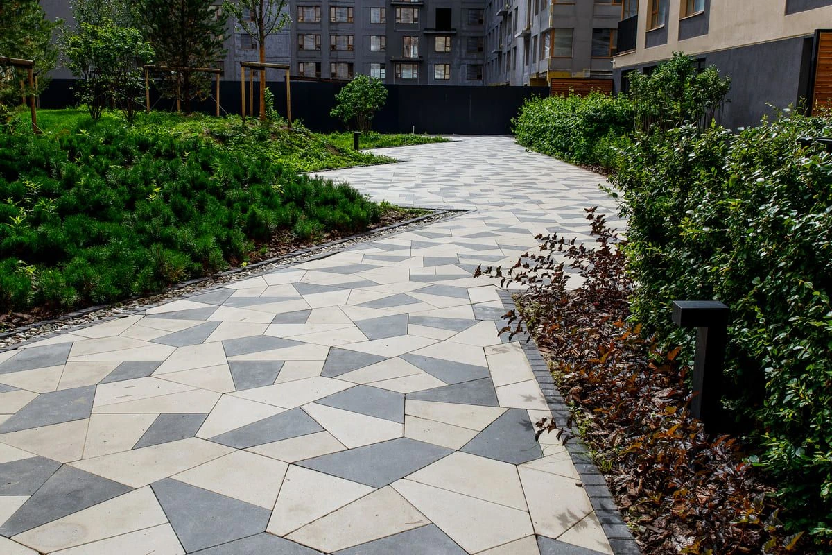 • Ландшафтный дизайн в Тюмени с плиткой Ригель, Трио, 300х900 мм