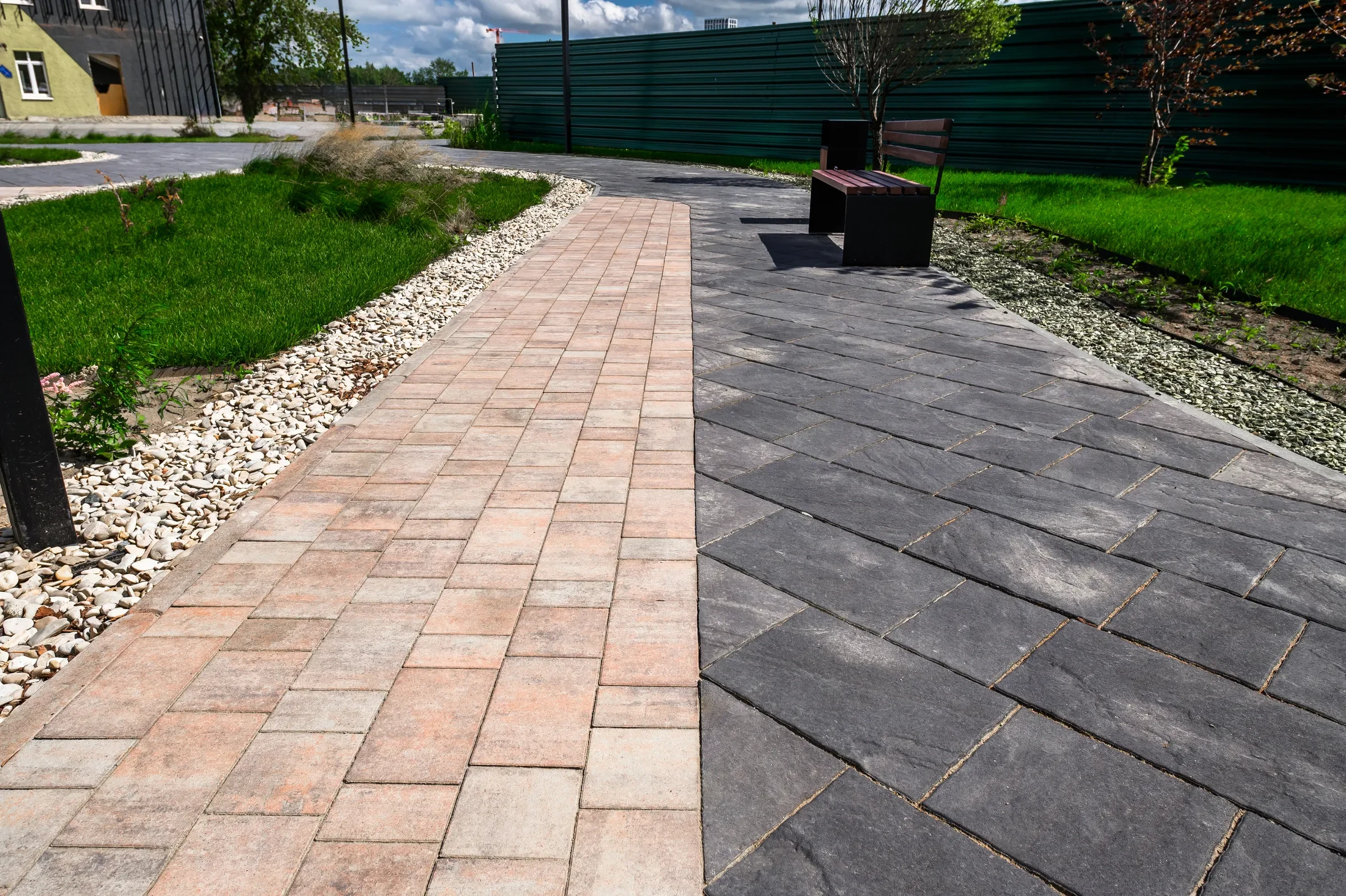 • Благоустройство территории дома в Луговом: плитка Старый город, Доломит