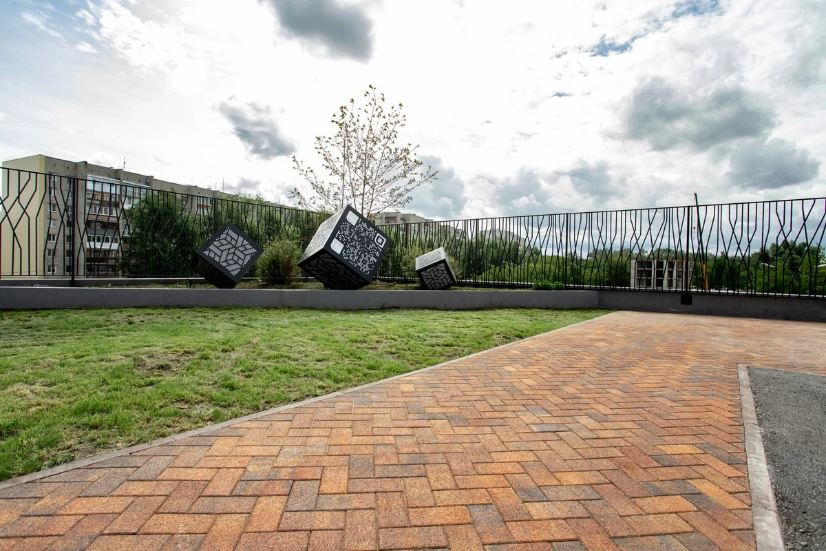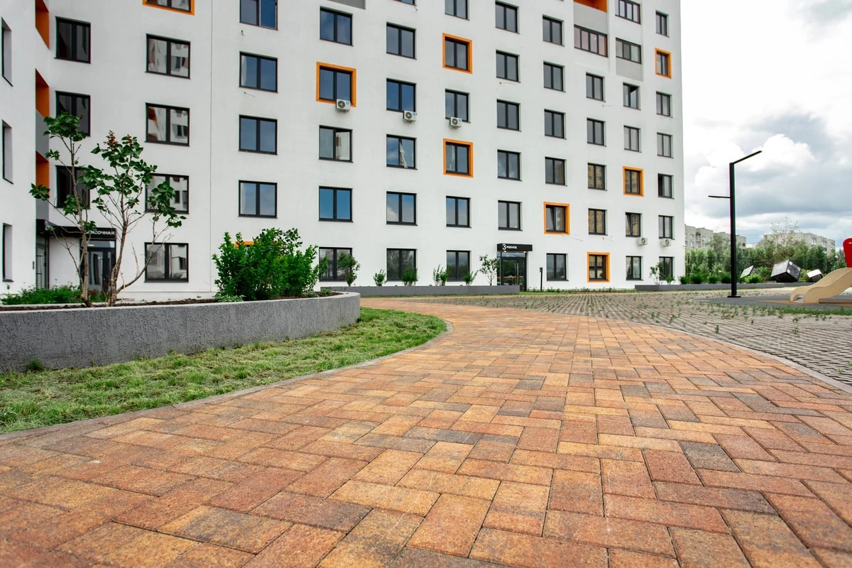 Внутридворовая территория жилого комплекса «Малевич» в Тюмени организована с помощью эксплуатируемой кровли. Она находится на уровне 3 этажа. Здесь размещена дорожно-тропиночная сеть, элементы озеленения, освещение, малые архитектурные формы. Под эксплуатируемой кровлей (двором) находится закрытый паркинг для автомобилей.
