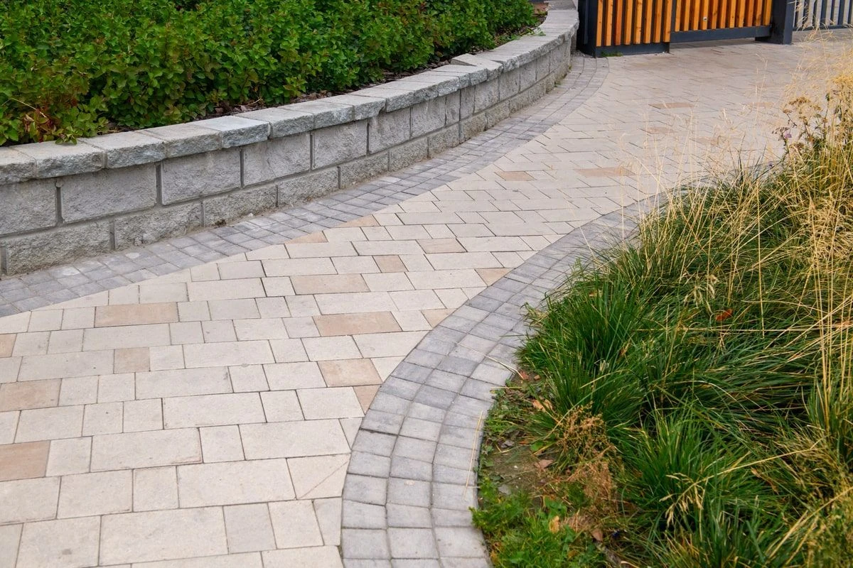 Проект выполнен в ЖК Колумб для внутренней и внешней отделки территории комплекса. Основный материал — тротуарная плитка «Старый город» в цветах Доломит и Степняк, которые визуально отделяют зоны друг от друга, а также служат контрастом от асфальтированной территории.