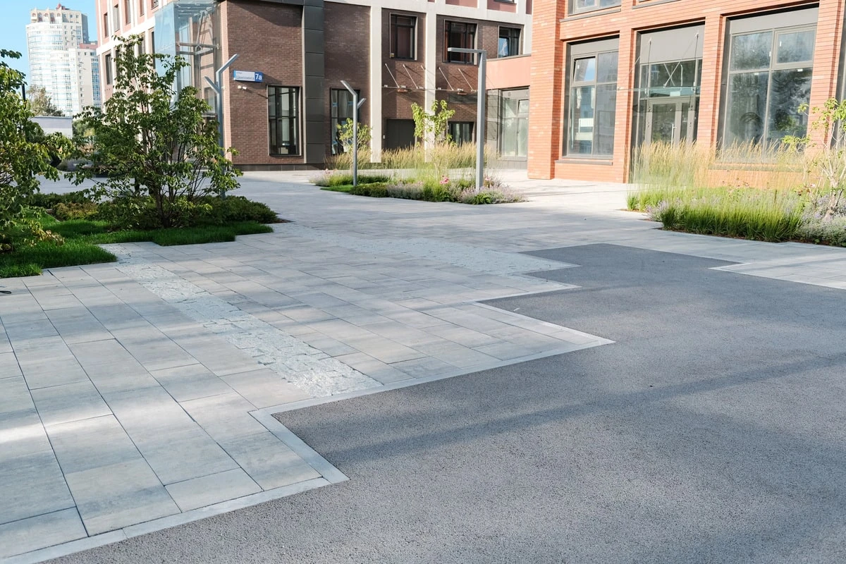 Для благоустройства территории внутри жилого комплекса использована тротуарная плита: