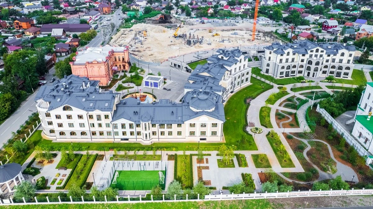 При благоустройстве территории жилого комплекса "Вознесенский" в Тюмени была использована тротуарная плита формы Абрис, в двух коллекциях: гладкий Стандарт и колормикс Гранит цвет Хаски.